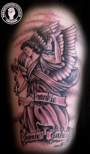 St Gabriel half sleeve Posted on June 14, 2011 by SC This is a St. Gabriel piece on the upper arm, nice to do a bit of a different slant on the black and grey religious theme. Share this: Click to share on Facebook (Opens in new window) Facebook Click to share on X (Opens in new window) X Click to share on Pinterest (Opens in new window) Pinterest Click to share on Tumblr (Opens in new window) Tumblr Like Loading...