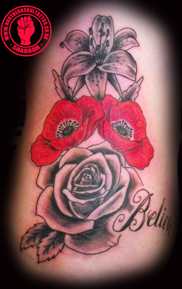 Lily, poppies, and a rose on ribs