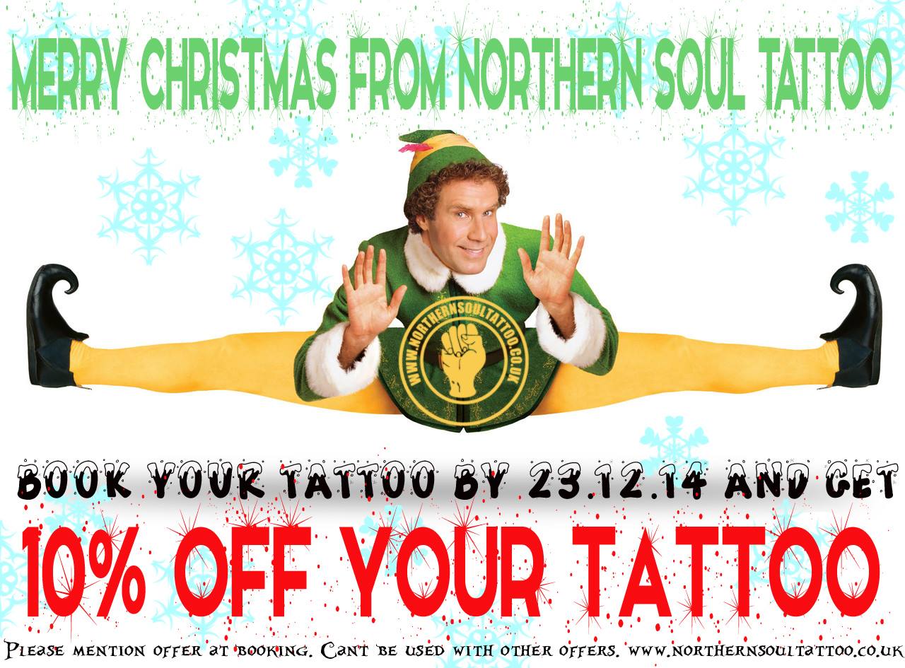 If you book a tattoo or session from now until Tuesday 23rd December you can get 10% OFF* your booking.