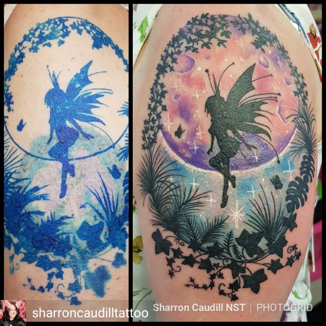 @Regrann from @sharroncaudilltattoo – #coveruptattoo of a lazered cover up. Lovely to give my customer her arm back after hating the old piece that she had. Happy customer happy Sharron! Win win •