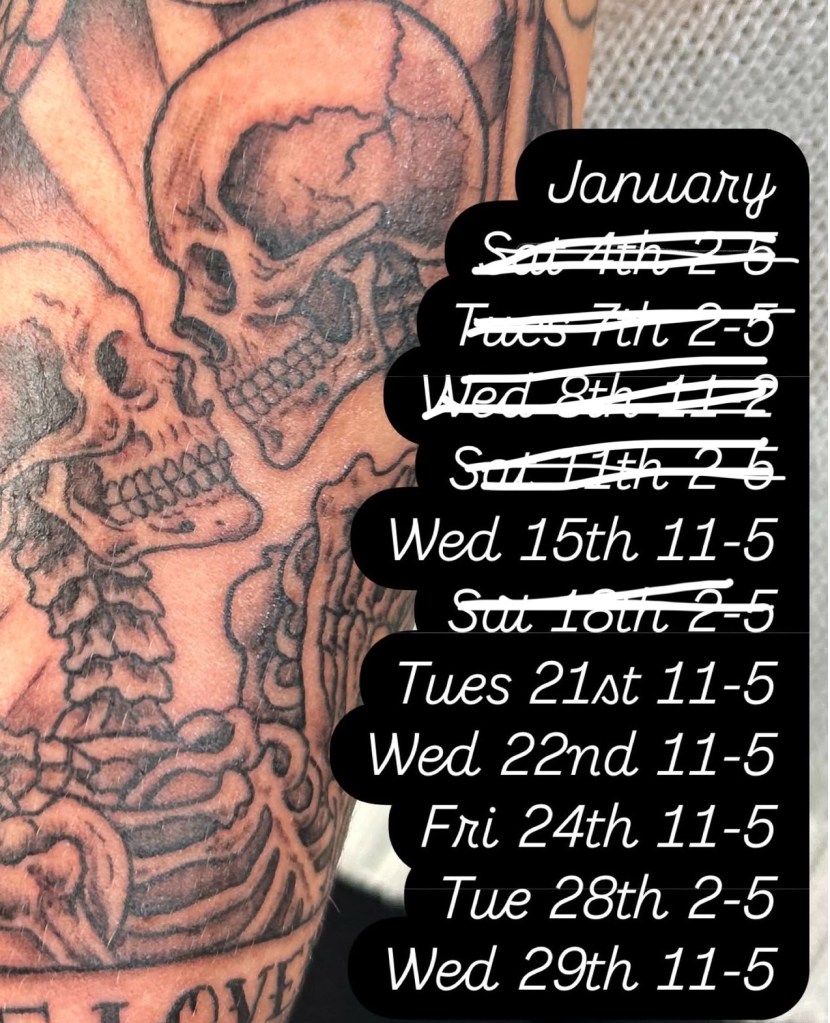 Little admin update we close the Wednesday before Christmas and reopen 4th January. I have two 3 hour appointments left in January and some appointments in February. To book a slot you will need a deposit and I can get you booked in. Gift vouchers are available in the studio and online head over to @keepthefaithtattoo for mor info