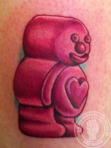 So after weeks of waiting I finally got to tattoo my first of a set of jelly babies on one of my lovely regular customers Zoe! You know its a good day when your tattoo is making you smile as you are doing it. We will be completing another Jelly Baby at the Manchester Tattoo Convention in March. So here it is pink jelly baby!