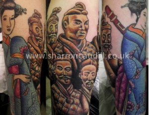 Here are a couple of tattoos I have on going at the minute. The first is a crazy combination of a Chinese warrior princess backed up by the terracotta army. This work is still ongoing but I thought I would let you see how it is coming along.